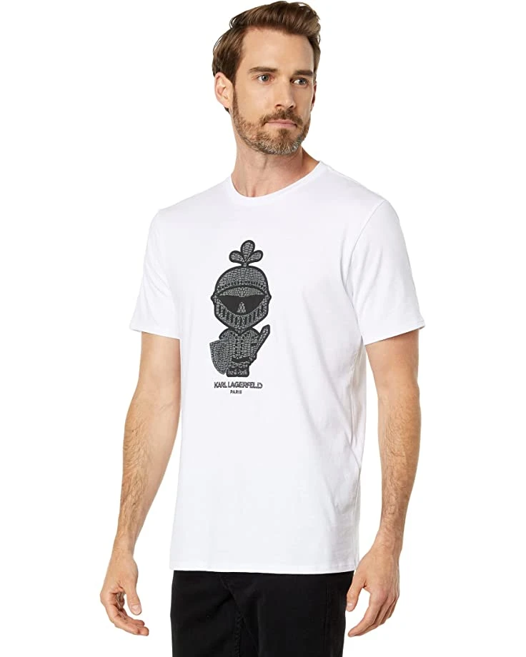 - Flex a cool and comfy vibe wearing Karl Lagerfeld Paris™ Animal “Got” Karl Short Sleeve Crew Neck T-Shirt.