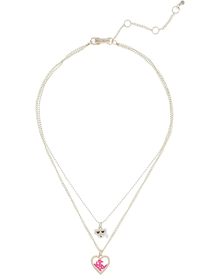 - Both layers feature Karl branded pendants.