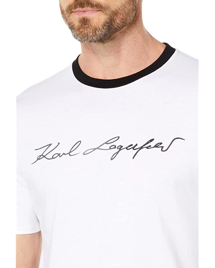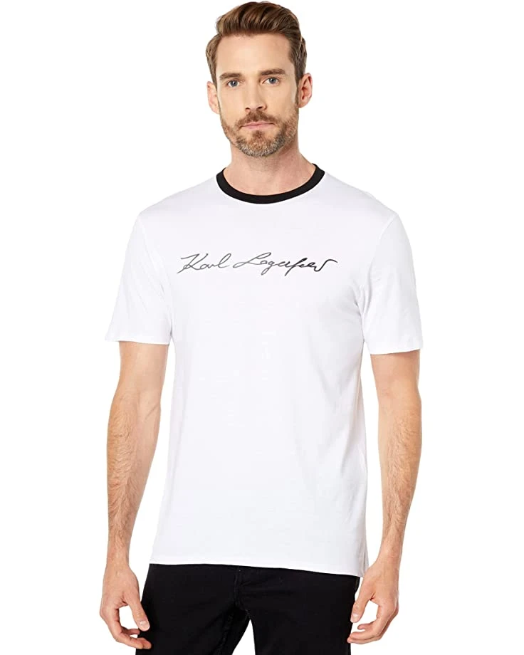 - Your closet will thank you for adding in the Karl Lagerfeld Paris Short Sleeve Crew Neck T-Shirt with Shiny Signature Logo.