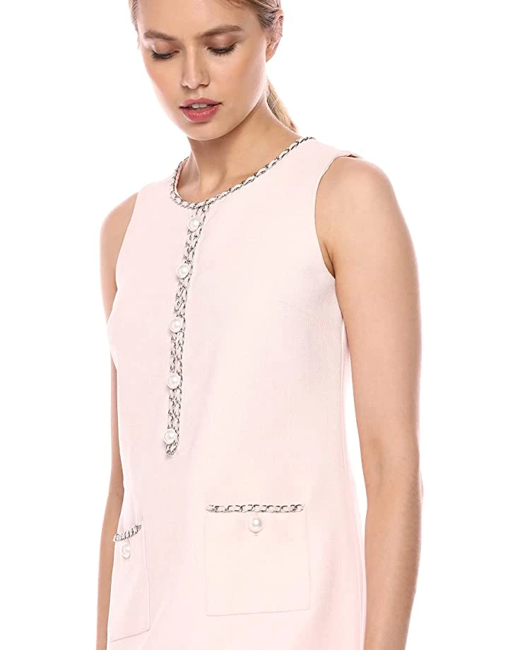 - Solid tweed dress with chain detail and pearls on pockets