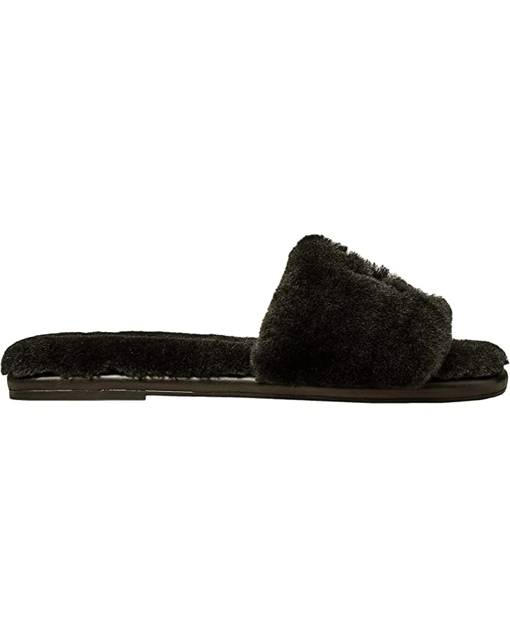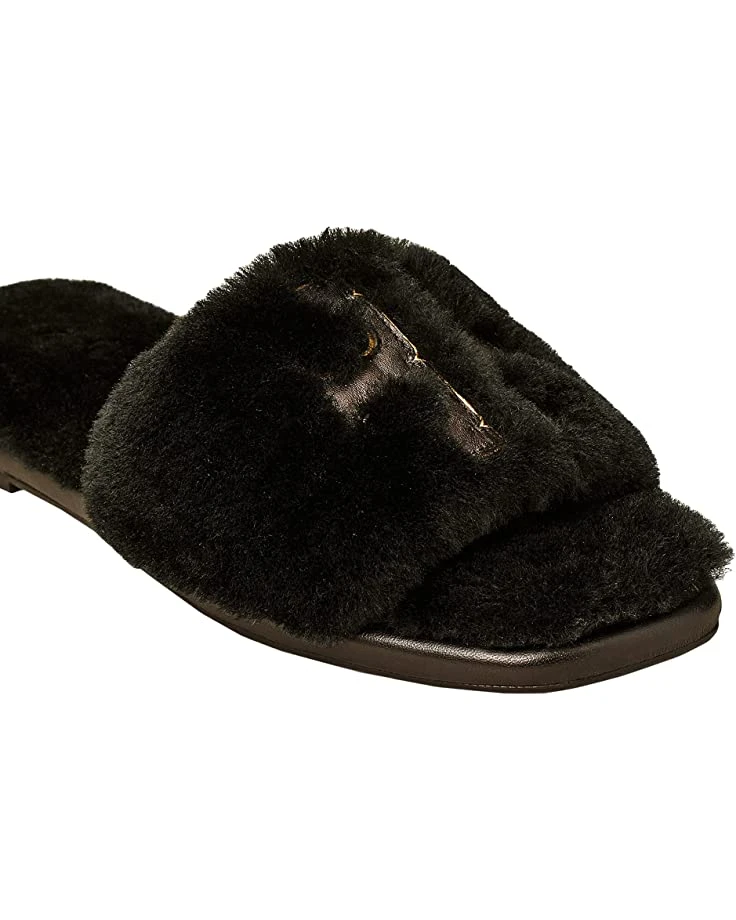 - Slide your tootsies into ultra comfort with the velvety soft Tory Burch Double T Shearling Slide slippers.