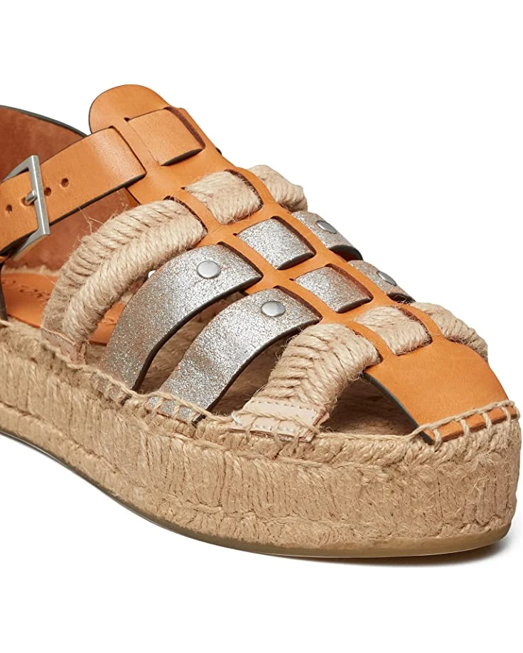 - With the lovely fisherman pattern and uniquely braided jute design, the Tory Burch® Fisherman Platform Espadrille Heeled Sandals are sure to take your style game to the next level.