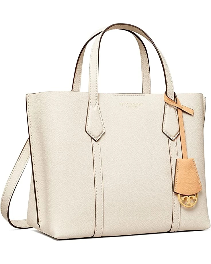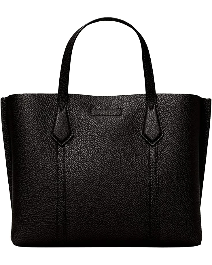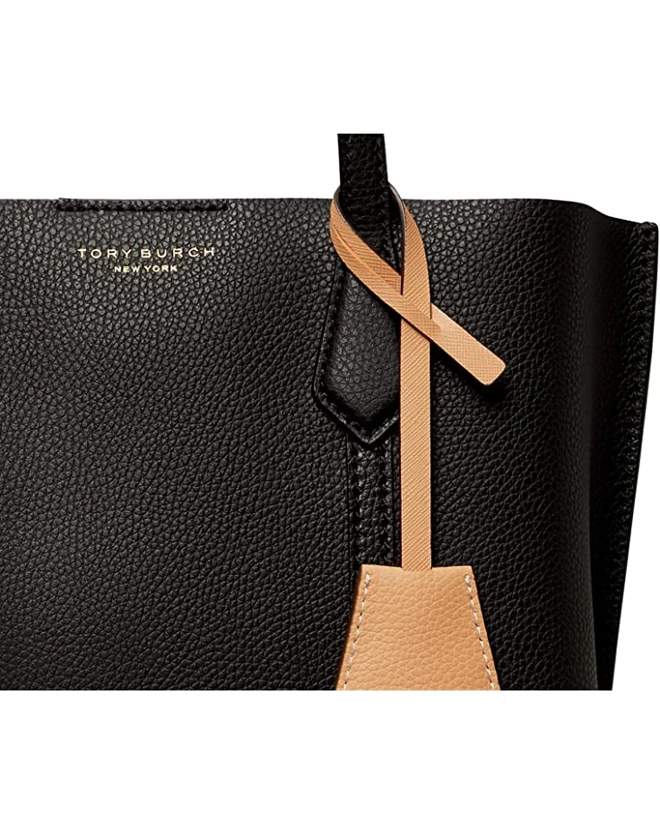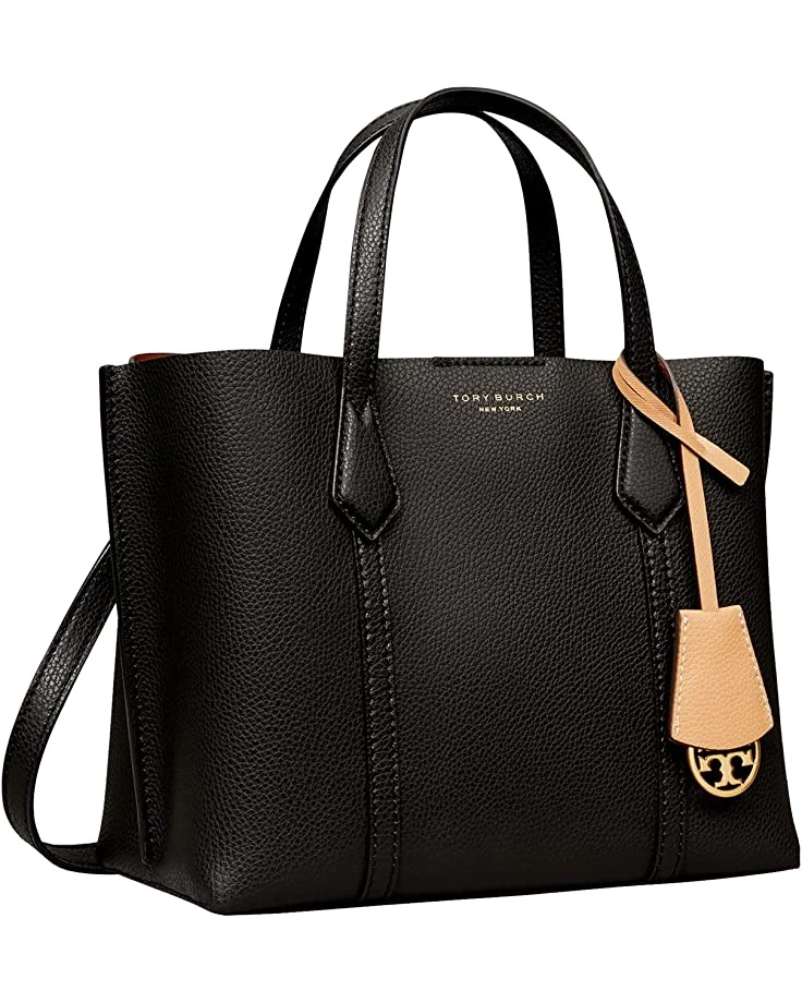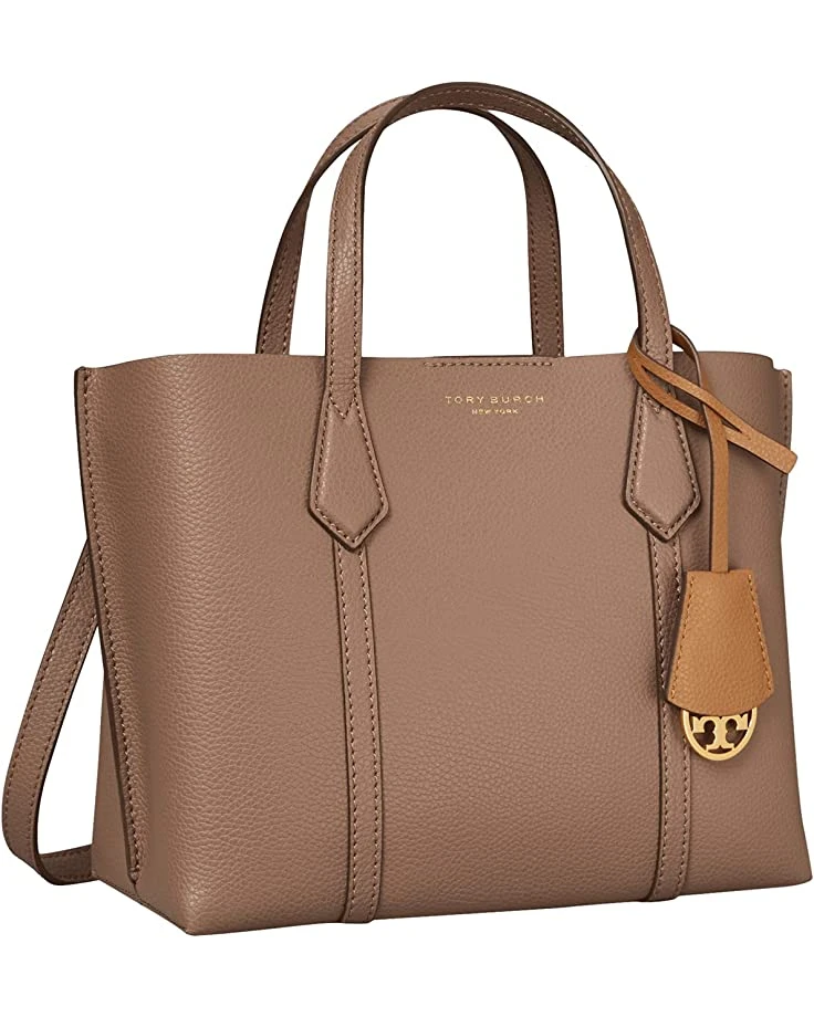 - Embolden your daily look with the supple leather Tory Burch® Perry Small Triple-Compartment Tote with carrying handles and detachable, adjustable crossbody strap.